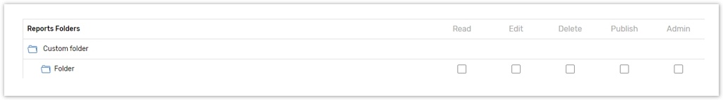 Read | A user is able to view reports in the Custom folders, but no modifications are allowed. |
