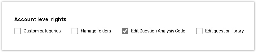 Edit Question Analysis Code | A user can edit Question Analysis Code in existing form, as well as new question analysis codes or delete them. |