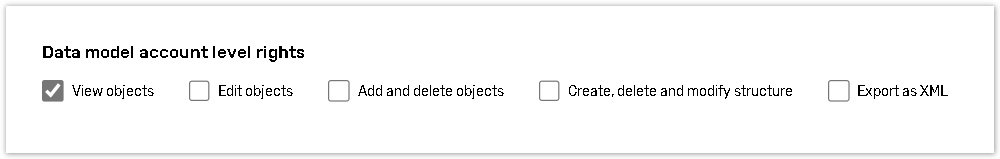 View objects | A user has access to administrator's Data Models, but can only view and export objects from them. |