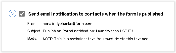 Activate the send email notification to contacts when the form is published functionality if required.