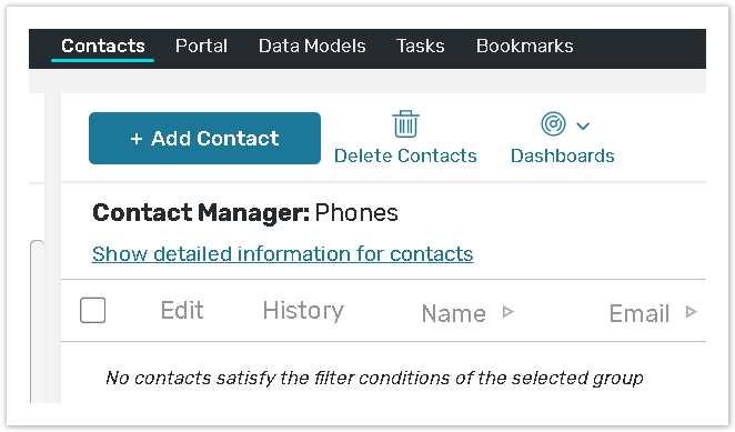 On the Contact Manager page click the Add Contact button to add new contacts:
