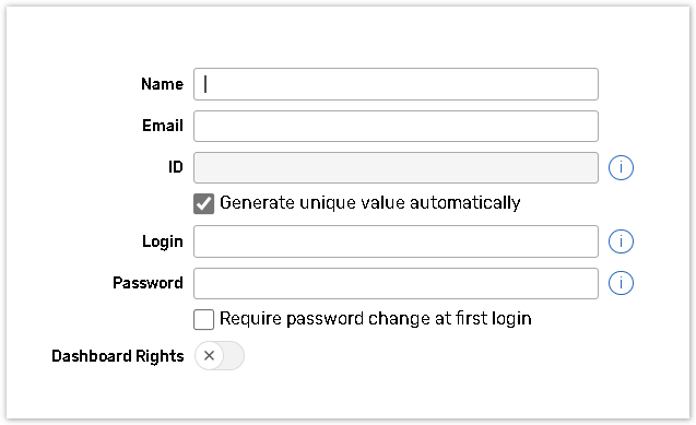Decide what information your Contact Manager should contain and add the Contact Manager fields. These fields will define the structure of your CM and will form the column headers of the data table. The following five fields are created automatically: Name, ID, Email, Login, and Password.
