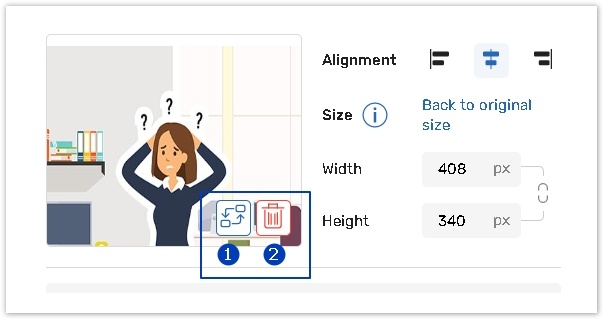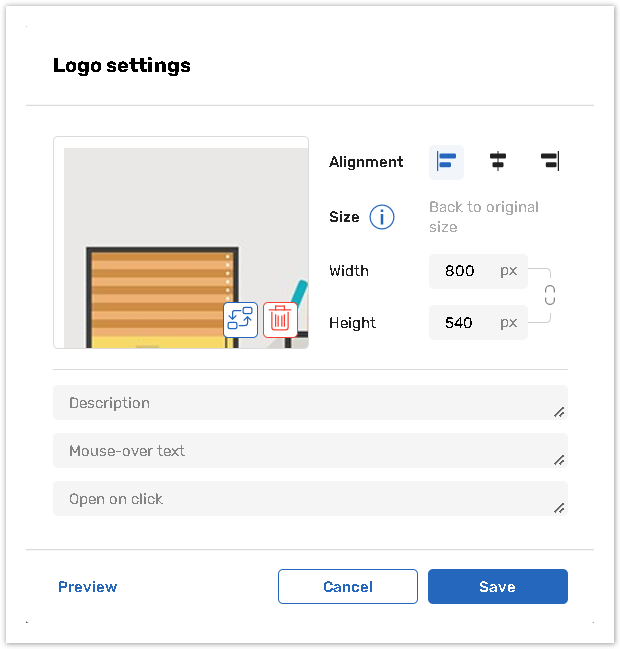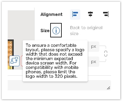 Change logo Size. If you are not sure what size it should be click on the lower right corner of the image and drag it to the required size. Preview the survey to see if matches your survey layout.