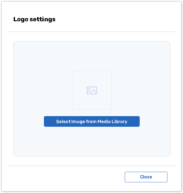 On the Logo Settings pop-up, click the Change (1) button to change your image to another. Once you have clicked it, the Media Library window will be opened. Choose your image, set up its settings and save your results.