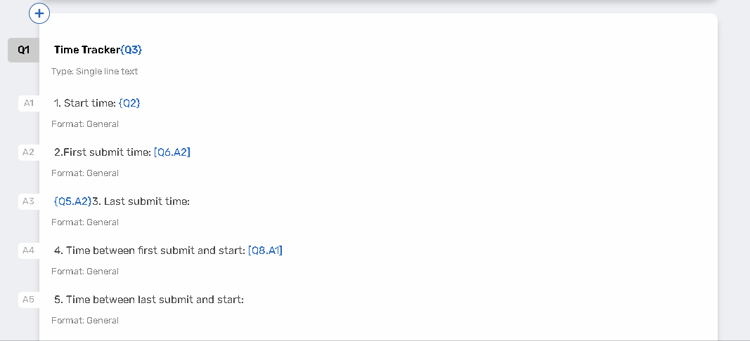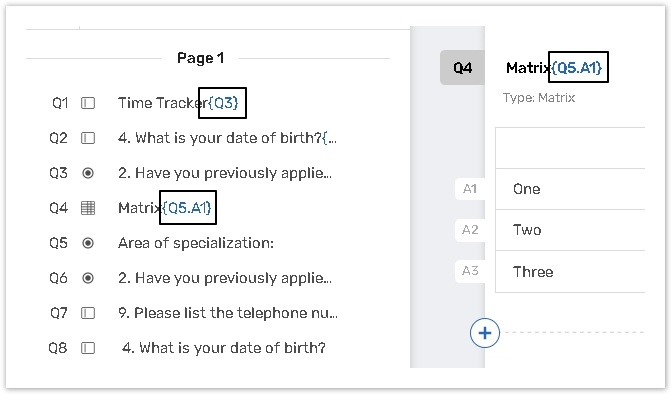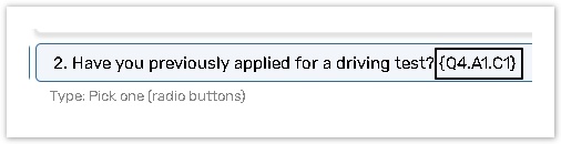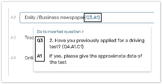 {Qx.Ay.Cz} – refers to the Column number Z of the Answer number Y in Question number X.