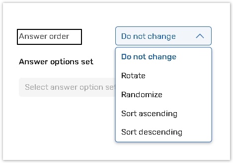 Use the Pin answer setting to keep answer choices on their positions. Selected answer choices will not be rotated, randomized, or sorted.