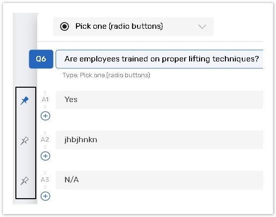 If you choose any option (except for the Do not change order option), the system displays the additional Pin answer icon next to the answer options.
