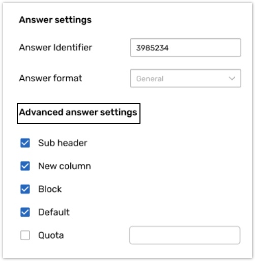 Focus on the answer option and see the Advanced answer settings on the right panel;