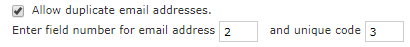 8. Indicate the number of the column, which stores Respondents' Emails. If you need to send more than one unique link to the same email address, use Allow duplicate email addresses feature, and specify the number of the file column which stores unique codes (passwords).