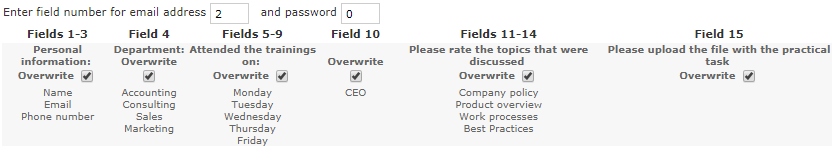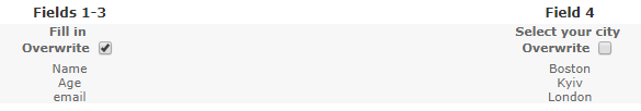 9. Select the Overwrite option if you wish to allow respondents to edit the pre-populated data. If this option is not selected, your respondents will be able to see the autofilled data (if the questions are visible) but won't be able to edit it.