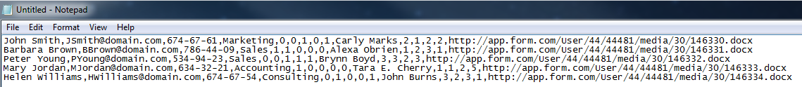 Your .CSV Data file should be configured the following way:(Note that the order of Data file fields corresponds to the order of questions):