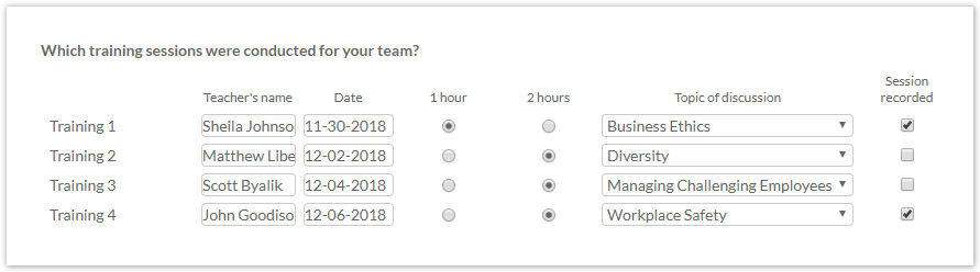 columns for autofilling pick-one elements of Matrix question;