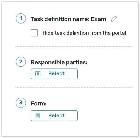 Check Hide task definition from the portal if you want to hide particular task definition for its' Responsible parties (assignees) and Task managers (group of the users that has a right to manage the task definition).