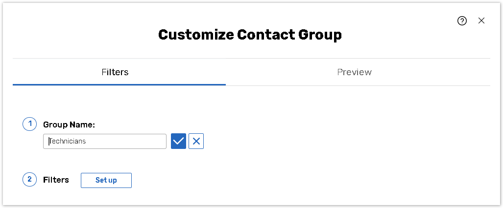 1.To customize your contact selection, provide a unique group name in the Group Name field under the Filters tab;