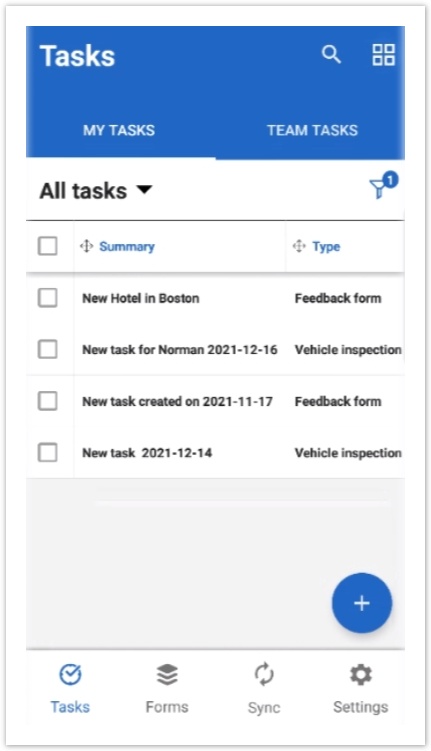 The Toggle View Mode button is located on the right in the upper app-bar and allows to view tasks as a table: