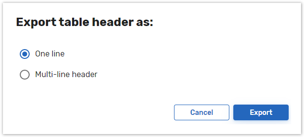 When exporting RDT (raw data tables) to CSV, you will be offered two options to export a table header as either One line or Multi-line header: