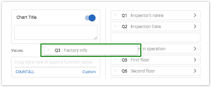 To set up Values, drag and drop the whole question or its part from the Data Source panel to the field Values on the Edit Chart panel:
