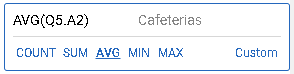 SUM - Used to calculate the sum of all numeric values in the specified question or field. These would be either respondent-entered numeric values or values assigned to predefined answer options via Branch on Range logic.