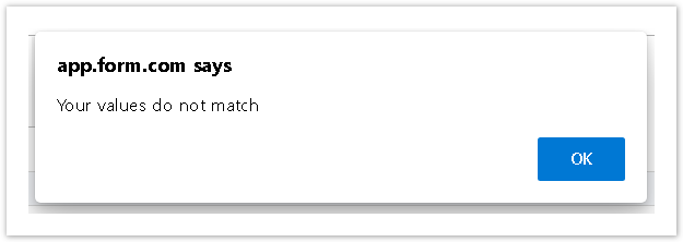 Warning message - Specify warning message that will be displayed if the entered values do not match.