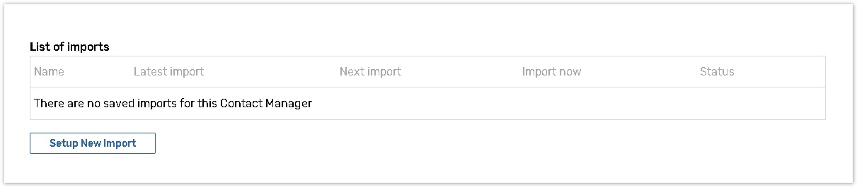 If you have not set up any synchronization yet or want to create a new one, click the Setup New Import button.