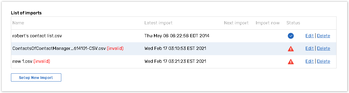 Please read the Import Settings article for more information about the list of imports page.