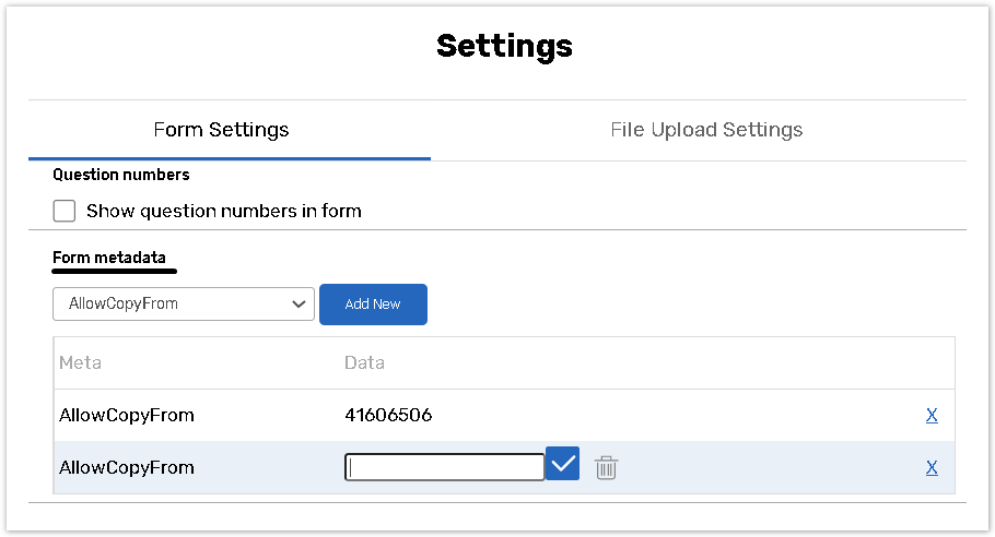 Target Form or Survey Id - Enter the unique ID of the form the data should be copied into.