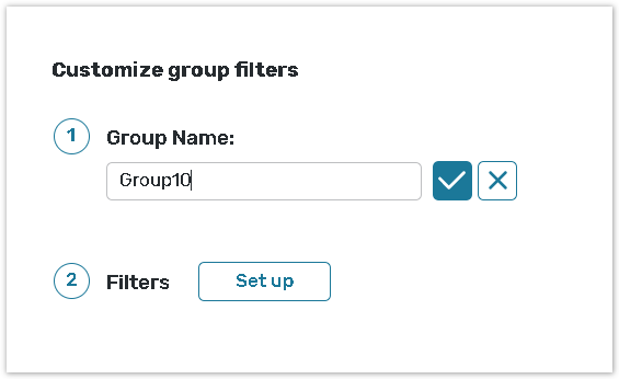 Specify the Group name and click on the Set up button to start creating the group; Add a new filter your contacts will be filtered by. For details consult Filters help chapter.