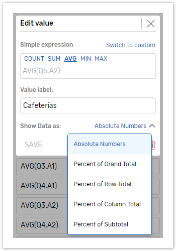 You may edit the Values in the Crosstab and change how the data is displayed: