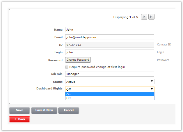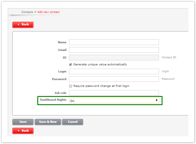 Therefore, when adding new contacts into the Contact Manager, you can specify the rights to dashboards for them straight away.