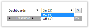 To do so, click on the dropdown next to the Search Contacts field, select Dashboards, choose On or Off, and click Go: