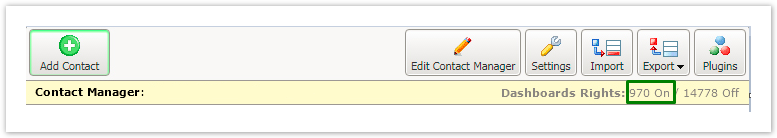 To see how many licenses are used in a particular Contact Manager, select it; the number of contacts with Dashboard rights will be displayed near the top: