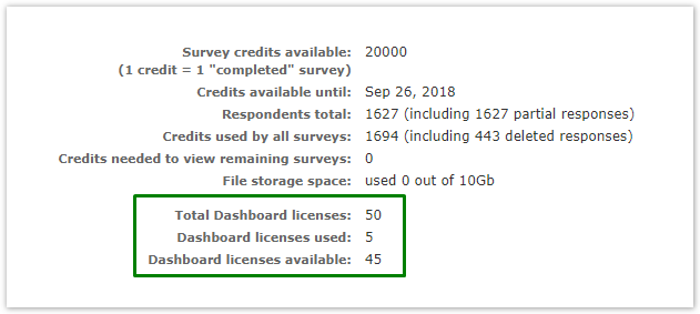 The dashboard rights are acquired through the dashboard viewer licenses, one right per one license (view the Administration Guide for more information on administrative functions of an account).