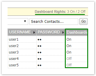 After that, a column called Dashboards will be added to your Contact Manager, to show each contact’s Dashboard rights:
