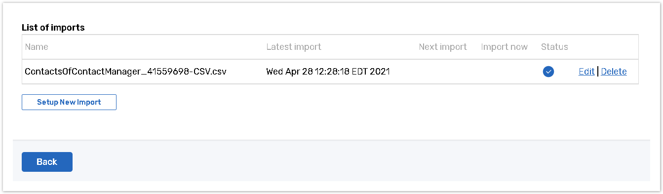 You will be redirected to the Synchronization page. Click the Setup New Import button:
