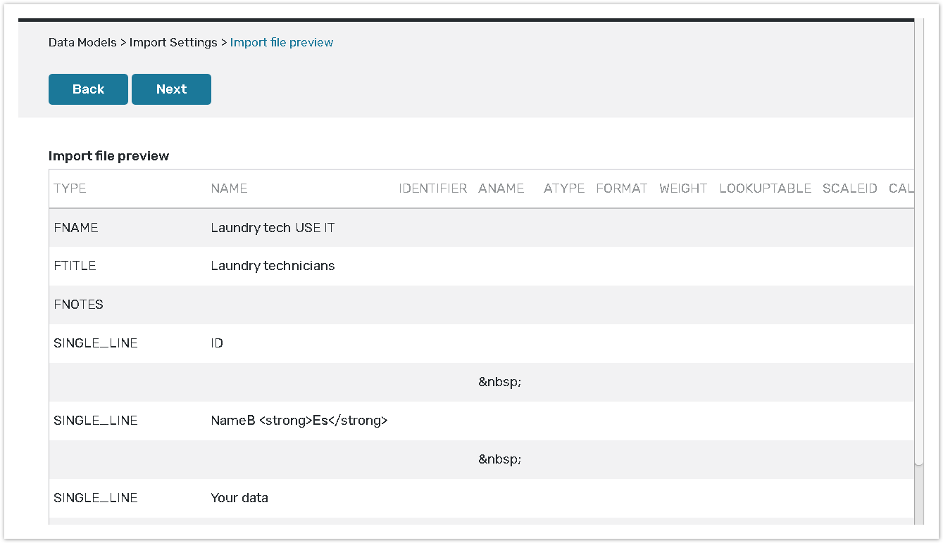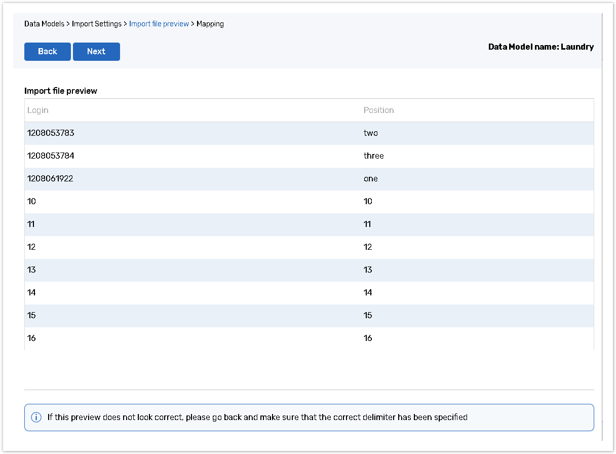 Confirm the accuracy of the file on the Import file preview page. Press the Next button to proceed with the Import process.