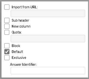 The <default/> tag is used within accessible surveys, which are adapted for screen readers and other tools intended for people with disabilities. The answer choice marked with this tag will be selected by default.