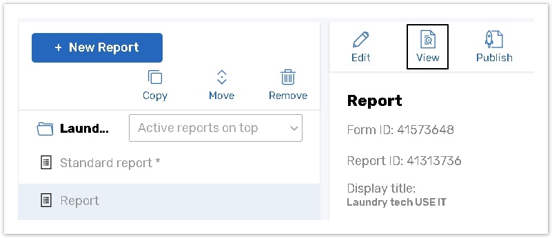 On the Reportspage, choose a report from which you would like to delete responses and click the View button;