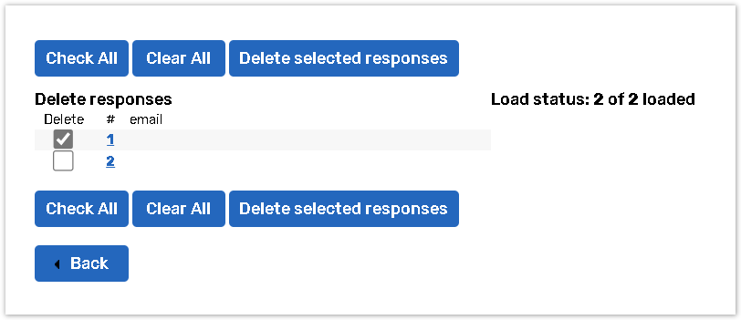 Check the responses you want to remove permanently. Click/repeatedly click Check All to select/deselect all of the responses. Click Delete selected responses.