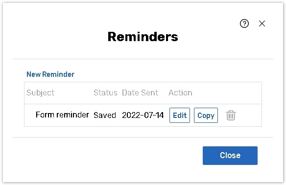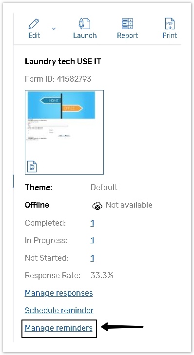If you have already sent reminders for a selected form before, reminders can be set through the Manage Reminders section.