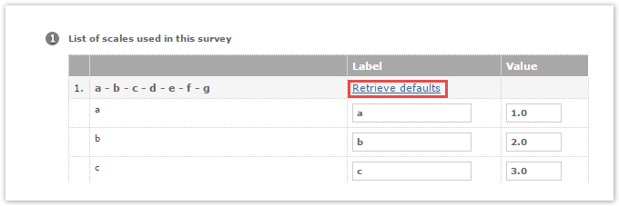 Label Use the text boxes to create short descriptions or definitions for each scale item. This text will be used instead of the original scale item text in online report, export, PDF, crosstab/group chart tables.