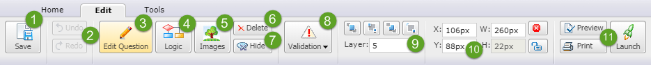 If you click on a particular question in the left pane, the Edit tab of the ribbon toolbar will have the following look: