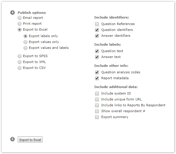 In the Publish Options section select Export to Excel option: