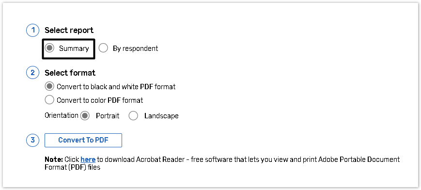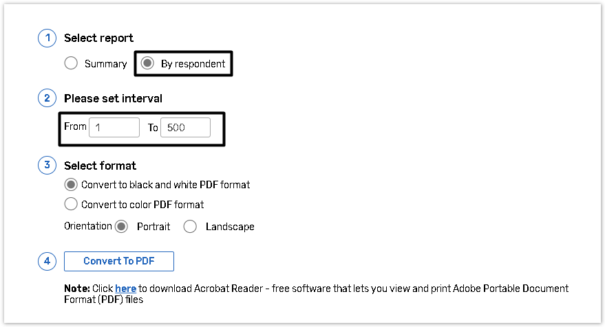 Select By respondent to convert the report by respondent to PDF.