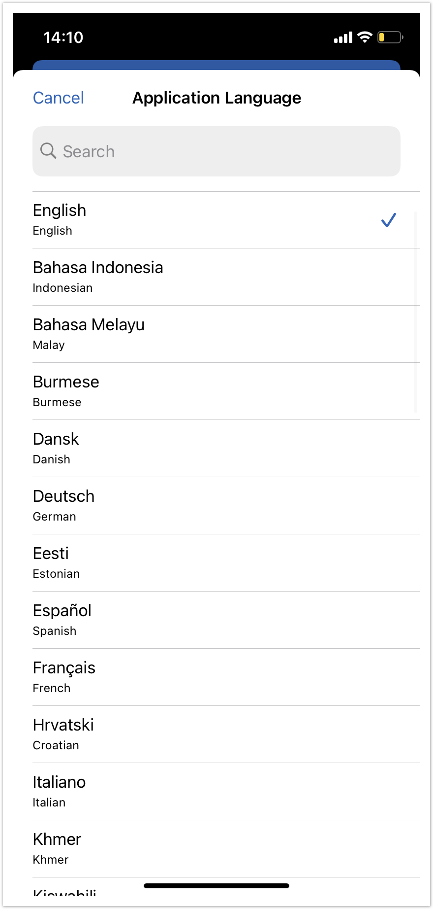 To do so, tap English underneath the Login button and choose a language of your preference from the dropdown list.