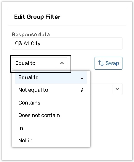 Use the Operators dropdown that contains the list of allowed operators for the chosen response data.
