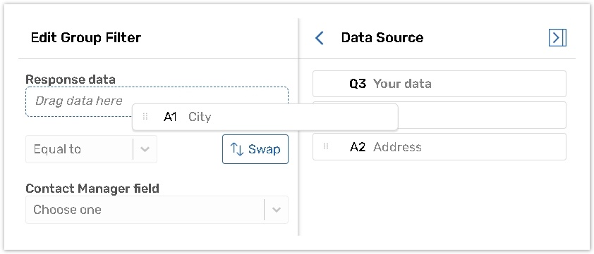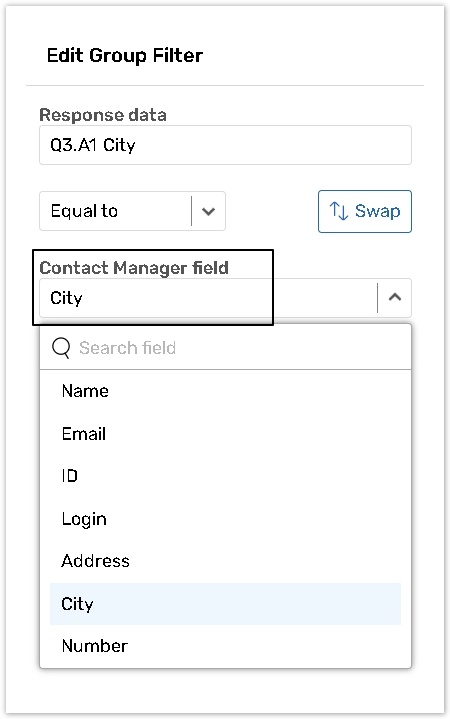 You can click on the Swap button to change the order of Response data and Contact Manager fields.