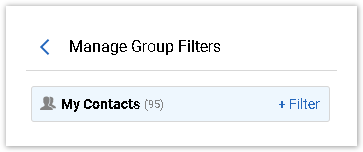 On the Manage Group Filters pane you will see the Contact Manager with all nested groups (if any), and can select a group or subgroup to add a filter. Click +Filter next to a needed Contact Manager or Group to proceed.