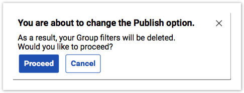 If you have set up at least one Group filter and then try to change the selected Contact manager or access to the Dashboard, you will see the warning message shown below. In case you proceed, your Group filters will be deleted.