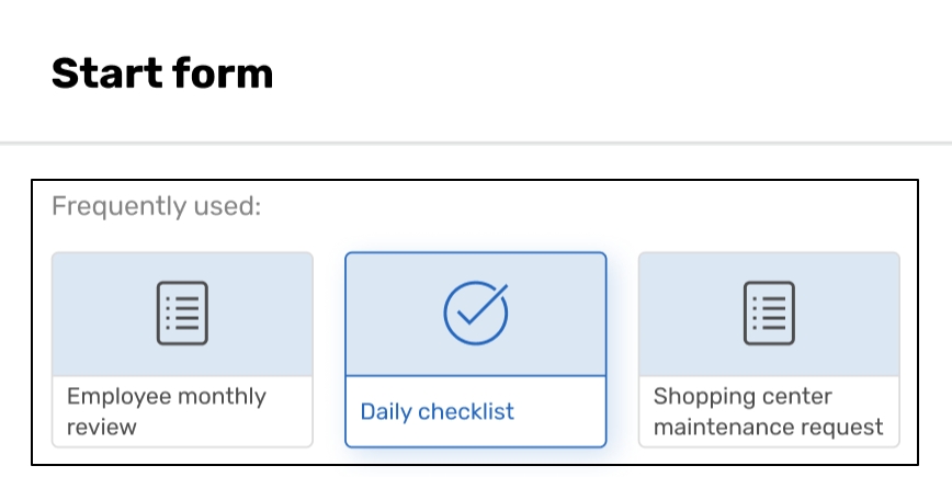 ![]() | If you create a lot of Forms or Task Definitions, the dialog displays the Frequently used block with the 3 most frequently used forms/tasks. |