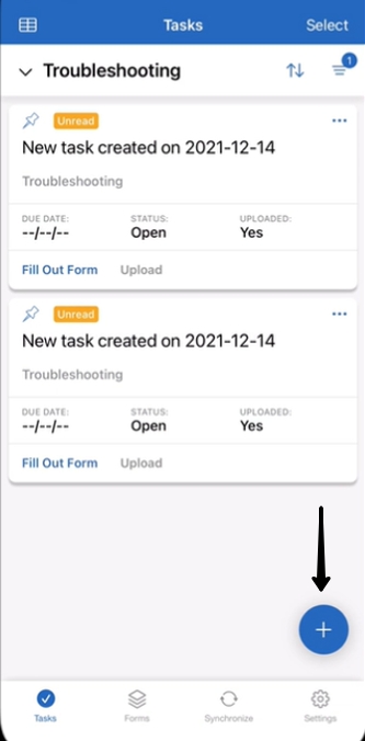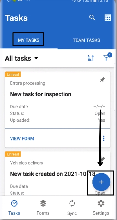 1.On the My Tasks page, click the "+" button.